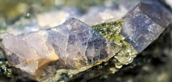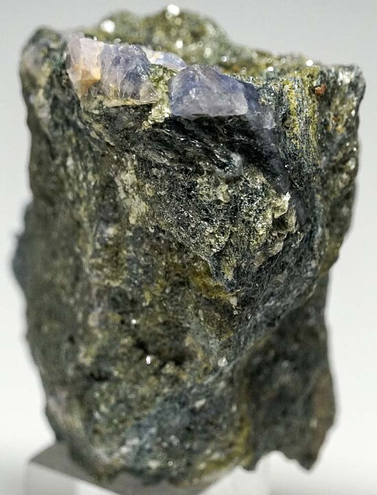 Blue to white crystals of rare Lawsonite in a Glaucophane schist matrix. Old specimen from the Type locality for the species, collected by Chuck Trantham back in 1968. Rare stuff! Ex. Chuck Trantham.