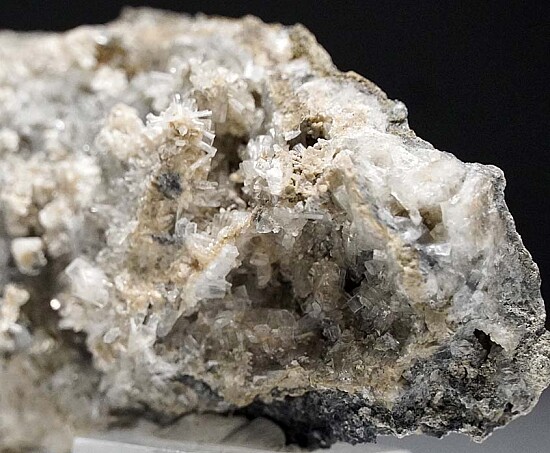 Colorless, translucent to transparent Thomsonite crystals in vug. The Thomsonite form prismatic crystals with flat terminations. These are rare to find in San Benito and are from a find collected by John Sulzbach in October 2014. This is a good sized example.