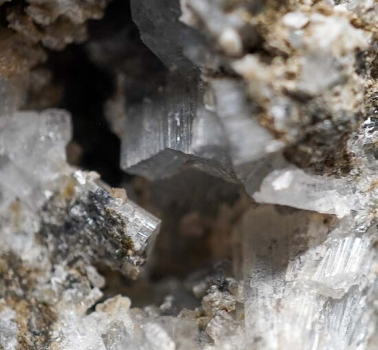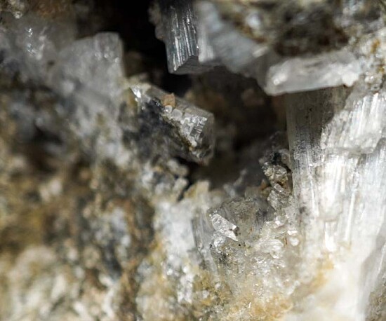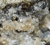 Colorless, translucent to transparent Thomsonite crystals in multiple vugs. The Thomsonite form prismatic crystals with flat terminations. Collected by John Sulzbach in October 2014. An uncommon and great addition to a San Benito suite of minerals!!