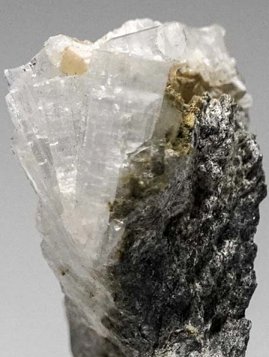 Colorless, translucent to transparent Thomsonite crystals in vug. The Thomsonite form prismatic crystals with flat terminations. Collected by John Sulzbach in October 2014.