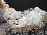 Colorless, translucent to transparent Thomsonite crystals in vug. The Thomsonite form prismatic crystals with flat terminations. Collected by John Sulzbach in October 2014. Uncommon specimen for a San Benito suite.