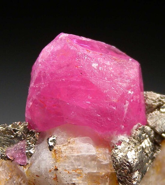 Translucent to transparent Ruby crystal on a Pyrite rich matrix. This locality is best known for Spinel but occasionally produces Rubies.
