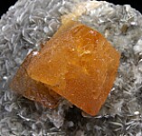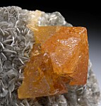 Cluster of transparent to translucent Scheelite octahedra well centered on a Muscovite crystal covered matrix. The Scheelite reach 4cm in size. Saw cut on back.