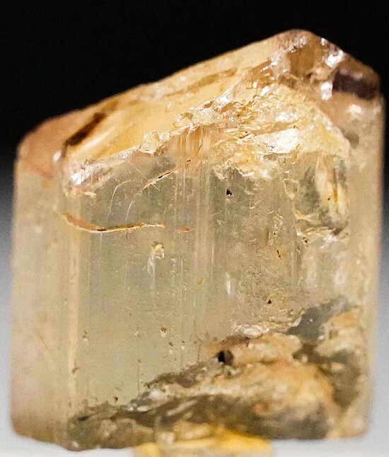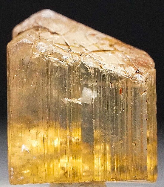 Well terminated single crystal of golden Scapolite from Tanzania. This is a classic Tanzanian gem crystal with great transparency. A complete well terminated crystal in excellent condition and valued at $200.