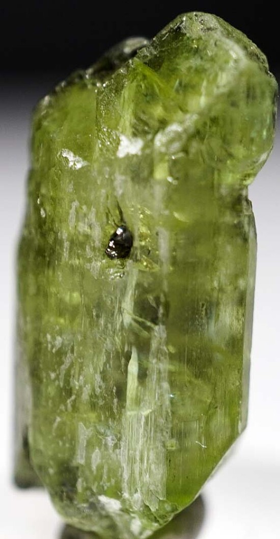 Single crystal of green Diopside from the Merelani Tanzanite mines. Good medium green color and is double terminated with areas of transparency.