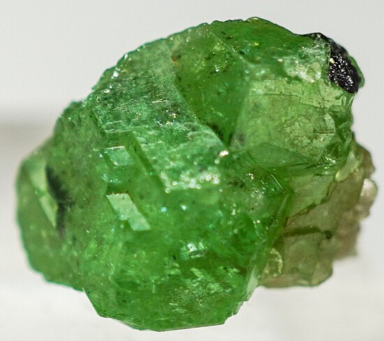 Crystal group of the vanadium and chromium rich Grossular Garnet known as Tsavorite. This variety was discovered in east Africa in 1967 and named by Tiffany & Co. for the nearby Tsavo National park. Vivid, radiant green color makes this specimen good color for Tsavorite, with bright, glassy crystal faces on front.
