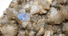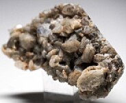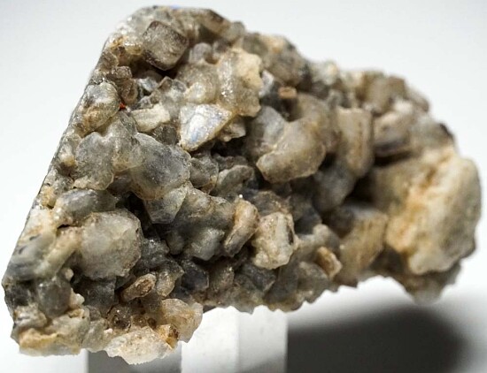 Uncommon specimen with crystals of Feldspar var. moonstone from a limited find in Tanzania. Individual crystals to 1.8cm that display a satiny blue color when turned under lighting. This 'Schiller effect' of color is seen at different angles on the different crystals and was therefore not possible to catch all the color in still photos - these are more colorful and attractive in person. Moonstone crystals are rare! Sawcut on base.