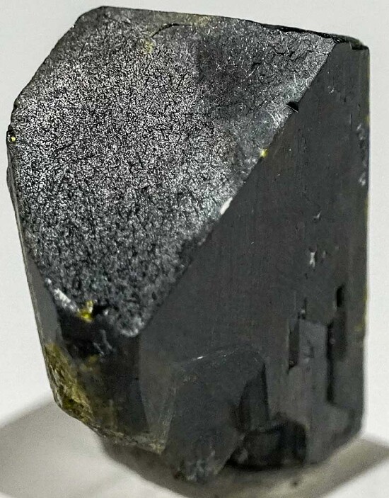 Stout single crystal of deep green Epidote. The crystal have smooth, flat crystal faces all around, with with slight transluceny at the edges. Complete all around and undamaged except for one very small, shallow chip. An excellent large single crystal from a lesser known locality that produced decades ago.
