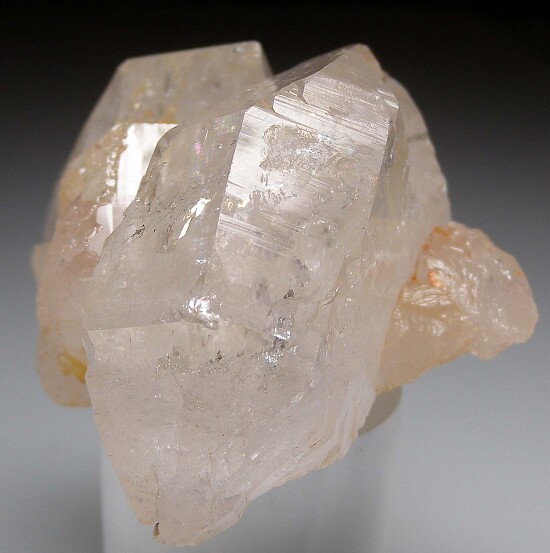 Transparent Quartz gwindel, 5.5cm wide, with Quartz crystals of typical form. Complete all around and in excellent condition. Ex. Len Pisciotta collection. I like the combination of the two forms of Quartz together.