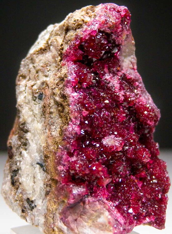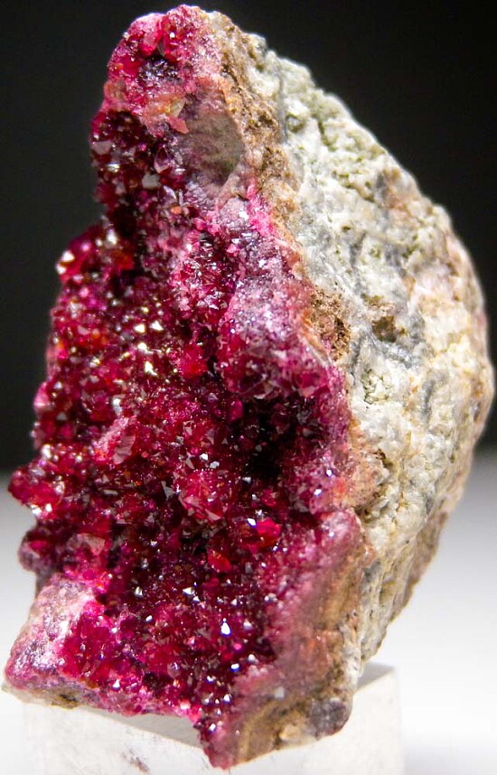 Glassy, translucent to transparent crystals of Roselite on matrix. Excellent deep purply red color.