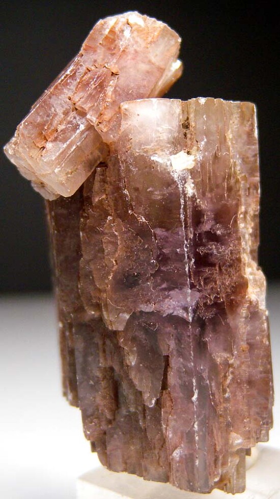 Double-terminated, complete single Aragonite crystal with a purple central zone and a more clear coloration at the tips. Complete and undamaged floater with glassy luster and another smaller crystal attached to one end. In terms of marvelous crystal form, these make great specimens.