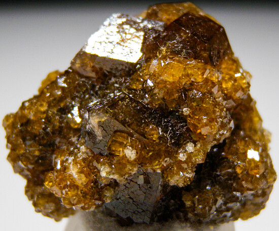 Cluster of golden brown garnet crystals from China. There are a mixture of sizes with larger crystals to 1.3cm mixed with small clusters of crystals. The Garnets are nicely translucent and undamaged.