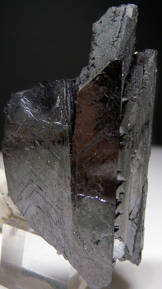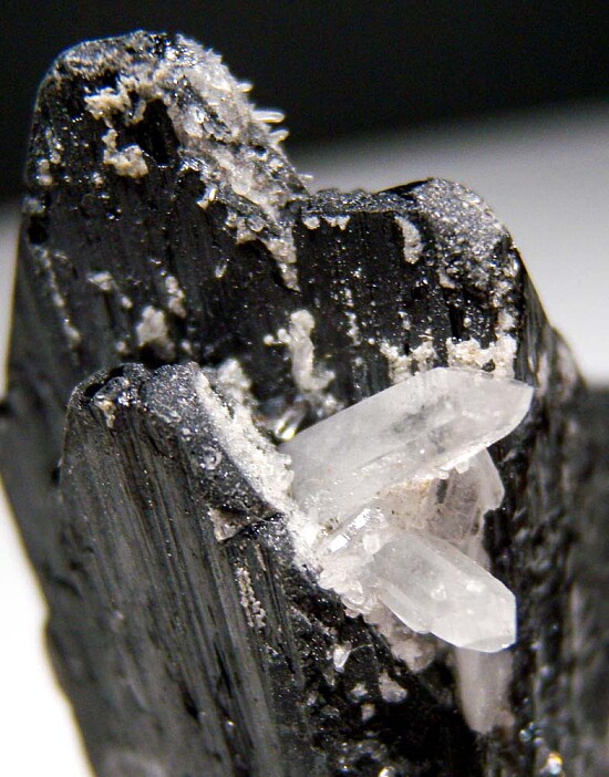 Tall, heavy crystals of dark Ferberite accented by transparent Quartz crystals. The Ferberite crystals are well terminated. Ferberite is a heavy, iron and Tungsten rich mineral, the iron-rich end member in the Wolframite group of minerals. The Yaogangxian Mine is a Tin and Tungsten deposit in China well known for superb Ferberite crystals.