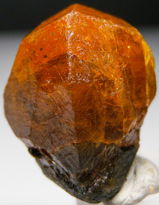 A single translucent crystal of orange Spessartine from Tanzania. The Spessartine has good color and is complete all around. This is a really nicely formed crystal!