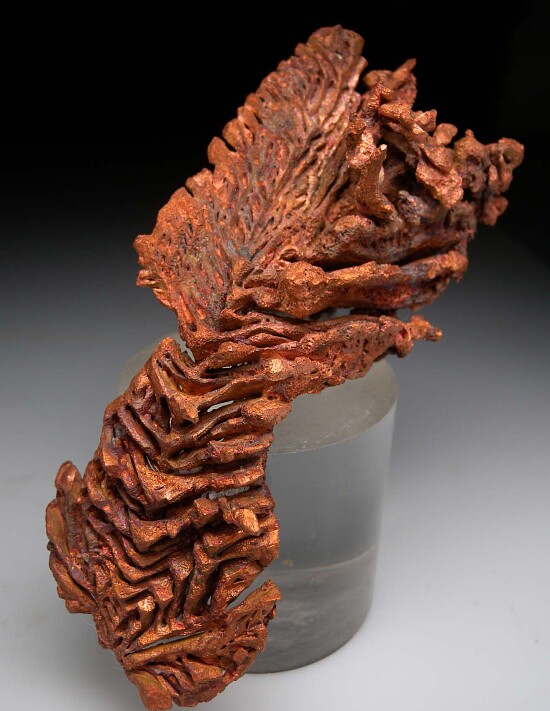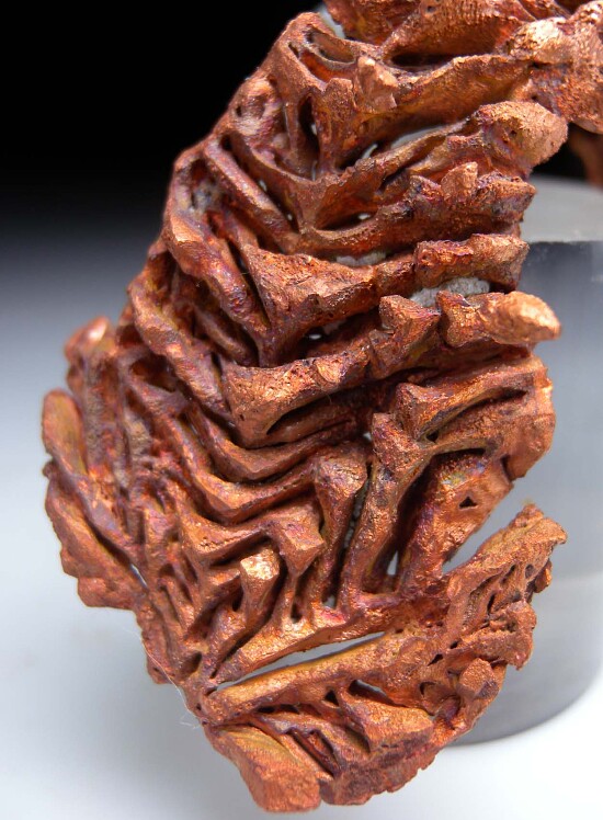 Large, feather-like formation of spinel-twinned Copper crystals from the Champion Mine in Michigan. Sits nicely for display on it's own and is good on both sides.