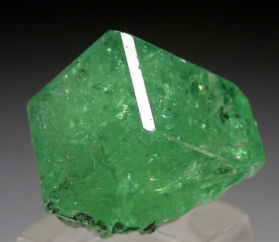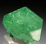 Fine quality single crystal of Tsavorite (a vanadium and chromium rich variety of Grossular) from the Merelani Tanzanite mines. This is a good sized crystal, gemmy and complete with highly lustrous glassy faces.