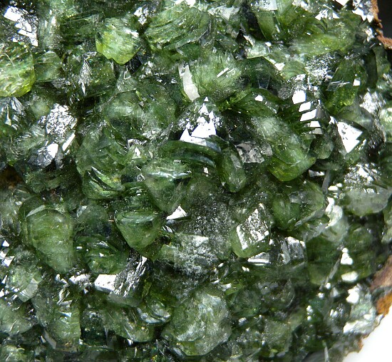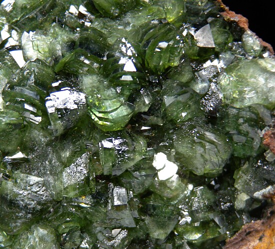 Glassy bright green Ludlamite crystals on matrix from a relatively new locality in northwestern Brazil. The crystals are bright, translucent to transparent, and reach 1cm in size. Gorgeous specimen of exceptional quality for the species.
