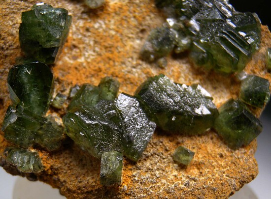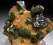 Glassy bright green Ludlamite crystals on matrix from a relatively new locality in northwestern Brazil. The crystals are bright, translucent to transparent, and reach 1.3cm in size. Gorgeous specimen of exceptional quality for the species. Was listed at $400 on my website.