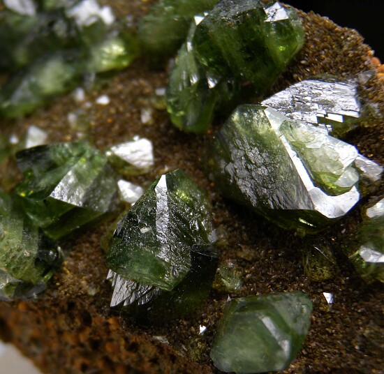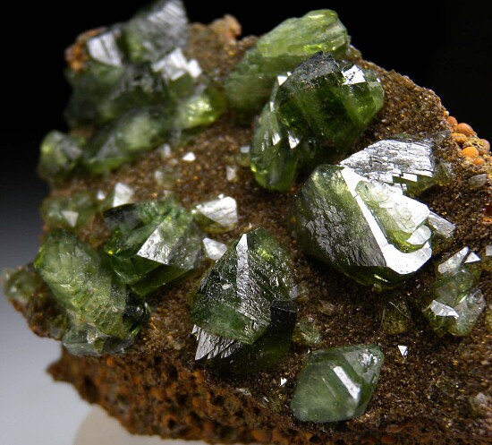 Glassy bright green Ludlamite crystals on matrix from a relatively new locality in northwestern Brazil. The crystals are bright, translucent to transparent, and reach 1.5cm in size. Gorgeous specimen of exceptional quality for the species.