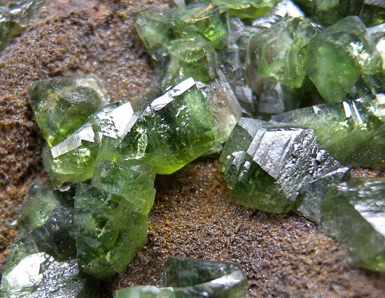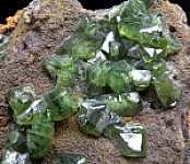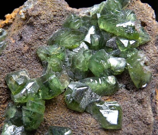 Glassy bright green Ludlamite crystals on matrix from a relatively new locality in northwestern Brazil. The crystals are bright, translucent to transparent, and reach 1.1cm in size. Gorgeous specimen of exceptional quality for the species.