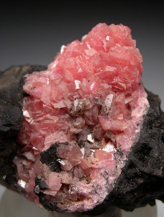 Rhombic pink Rhodochrosite crystals on matrix from Santa Eulalia. Santa Eulalia Rhodochrosites with such large massess of crystals are not common. Ex. Jean Lee collection. Valued at $350.