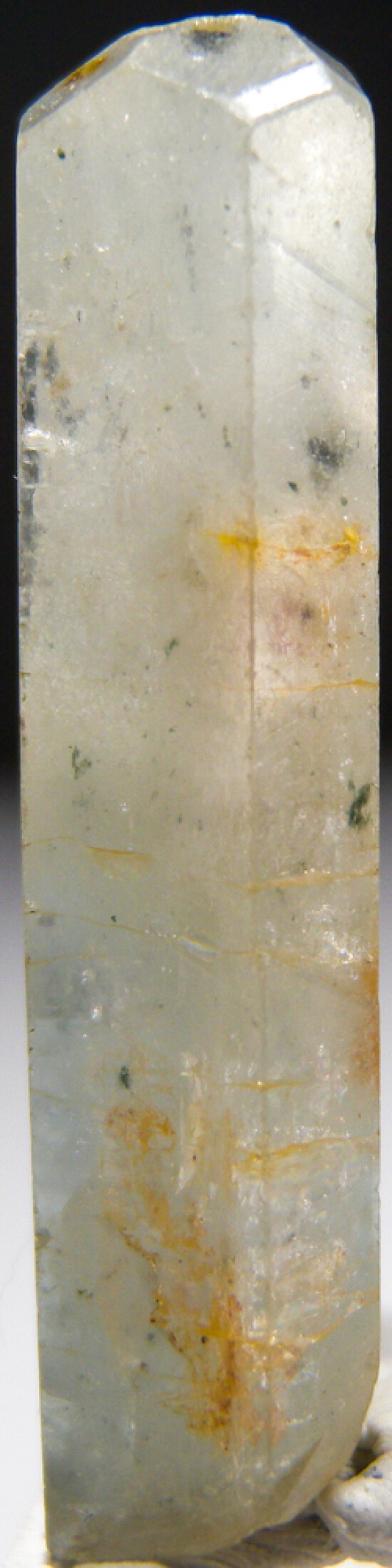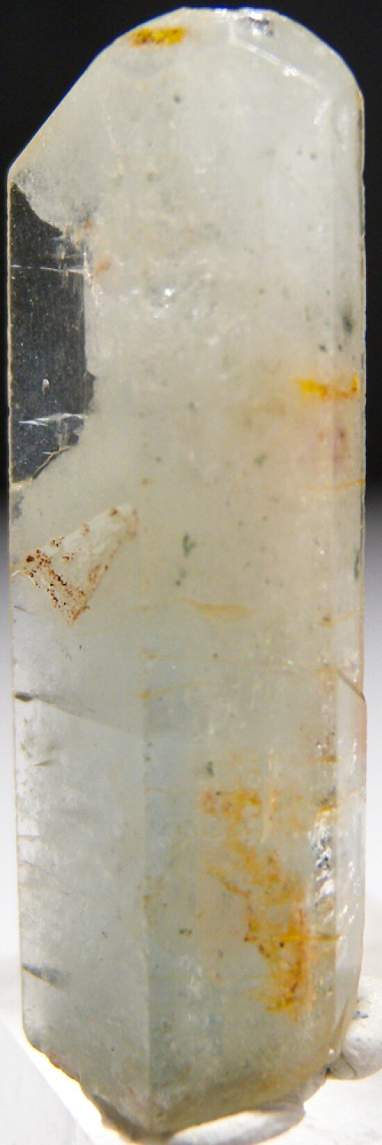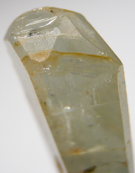 Single glassy crystal of Aquamarine from Brazil. This is an old piece I acquired back in the 1970s. It's complete all around with light blue/green color, glassy faces and areas of transparency.