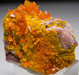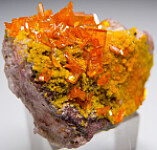Beautiful small specimen with transparent 'window pane' orange Wulfenite crystals associated with yellow Mimetite. The back side is covered by Barite crystals with coating of Mimetite. Very nice!!!!