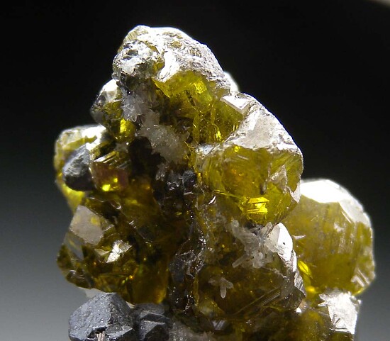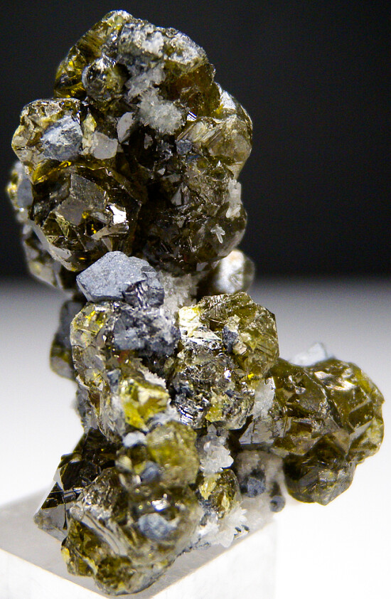 Gemmy green Sphalerite crystals with Galena from Bulgaria. These green Sphalerites are uncommon and among my favorite of Sphalerite specimens. Lots of good crystals all around, some like green glass. Valued at $200.