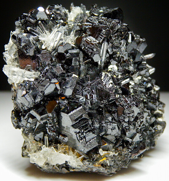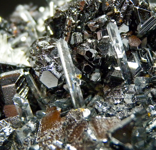Shiny black Sphalerite crystals with incredible high luster associate with transparent needle Quartz.