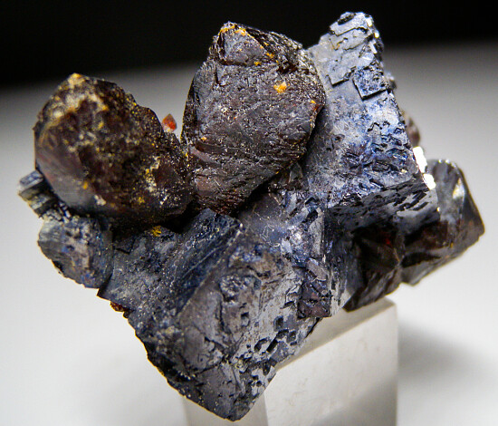 Large cubes of lustrous Galena crystals, to 2.3cm on the diagonal, associated with translucent red Sphalerite crystals. Well balanced, aesthetic example.