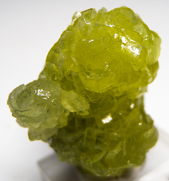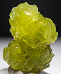 Cluster of translucent Prehnite crystals from the Merelani Tanzanite mines. Don't sleep on these - along with a small number of Jeffrey Mine specimens, Merelani Prehnite are the best crystallized Prehnite in the world. This one is nice and translucent with good color and large, chunky crystals sticking out of overall rounded formations. Valued at $250.
