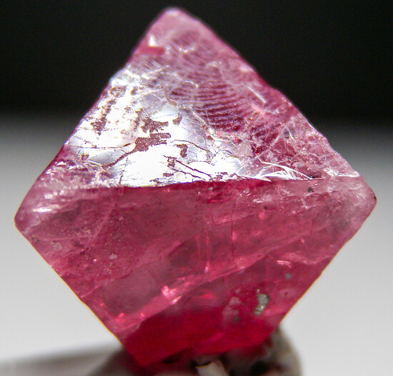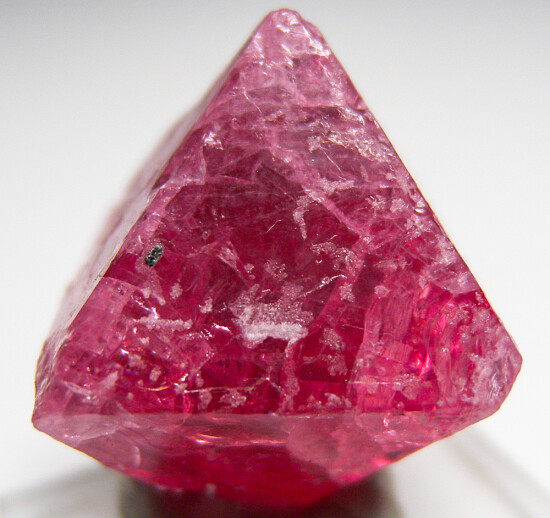 Single octahedral pink Spinel crystal from Tanzania. Has 5 good terminations with the bottom tip missing. Good color with areas of transparency.