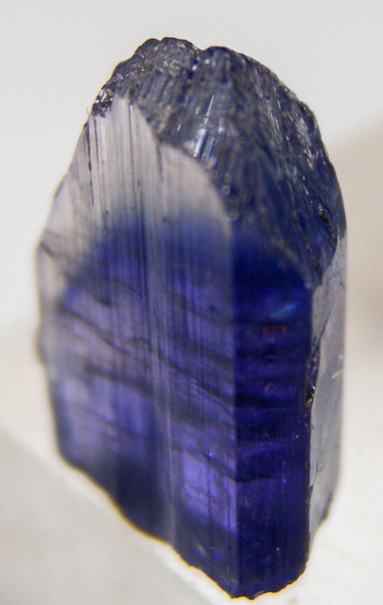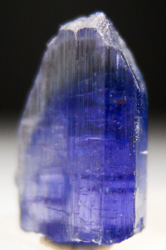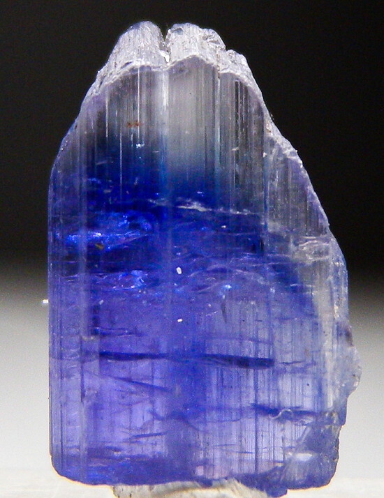 Bi-color single Tanzanite crystal. Complete all around and undamaged. Pale pink to colorless over blue coloration. A good single crystal of this gem species!!