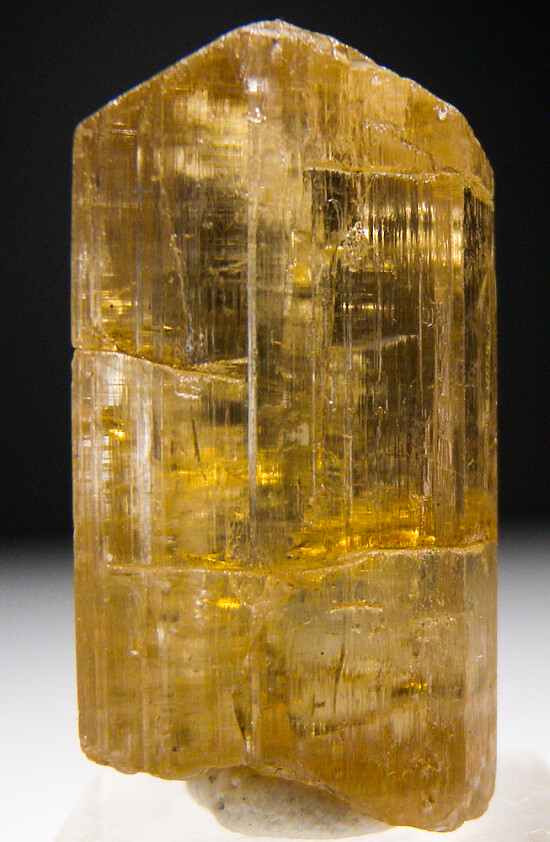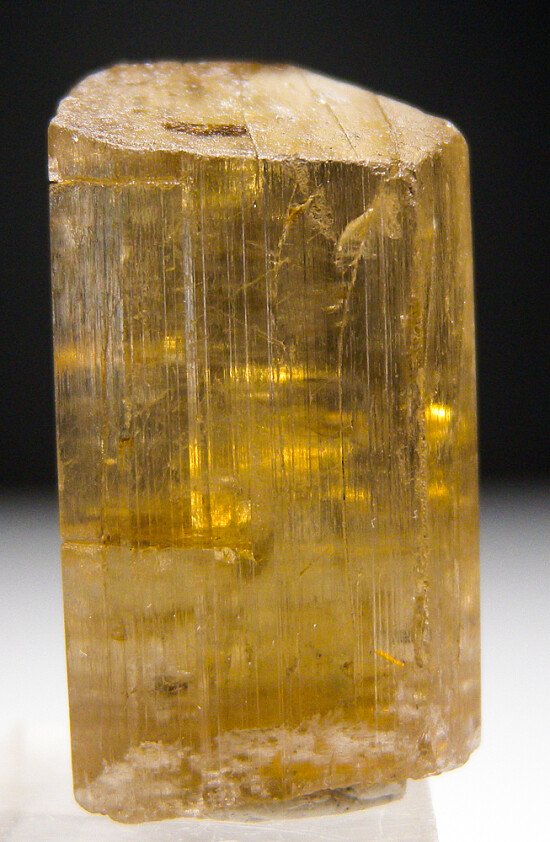 Golden Scapolite from recent finds. Classic Tanzanian gem crystal that is complete, well terminated, with good transparency. Well crystallized all around with uniform shape and striated prism faces, undamaged. Valued at $150.