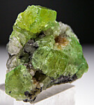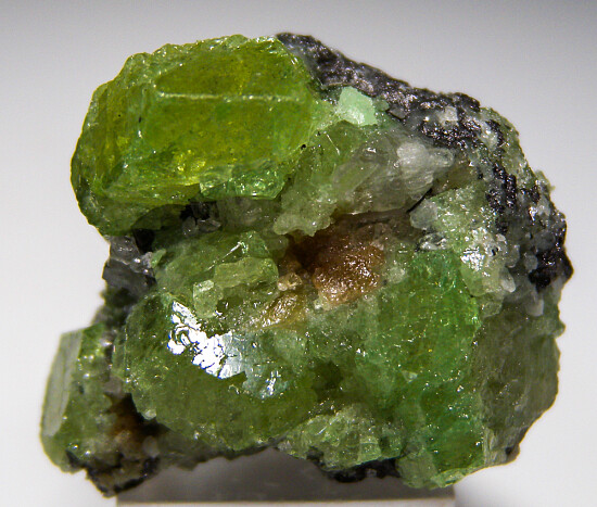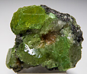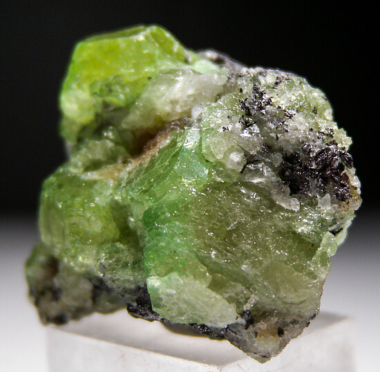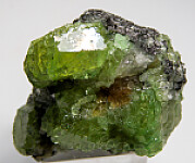 Gemmy green Tsavorite crystals on Graphite. Tsavorite are vanadium and chromium rich Grossular. This is a less common matrix specimen with individual crystals to 1.4cm in size.