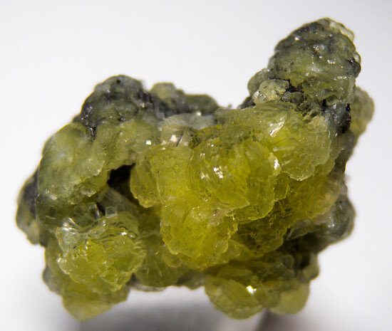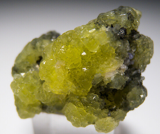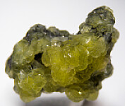 Spherical groups of translucent lemon yellow Prehnite crystals. Great color with distinct crystals. Merelani Prehnite is among the world's best for crystallized Prehnite. This specimen is intergrown with Graphite crystals.