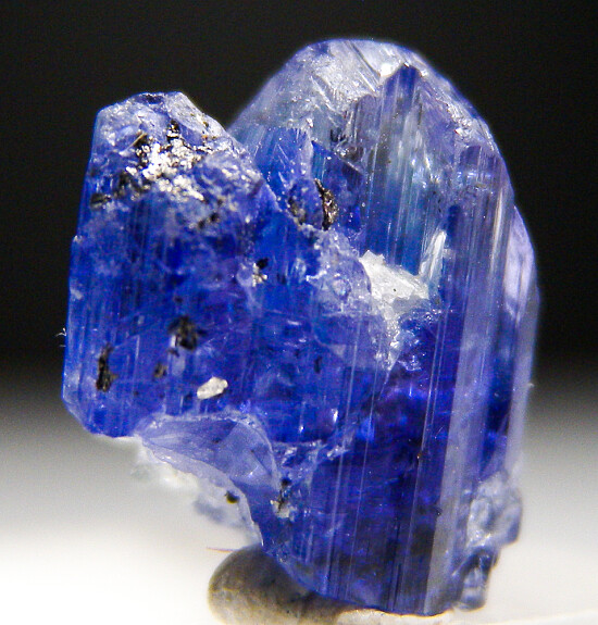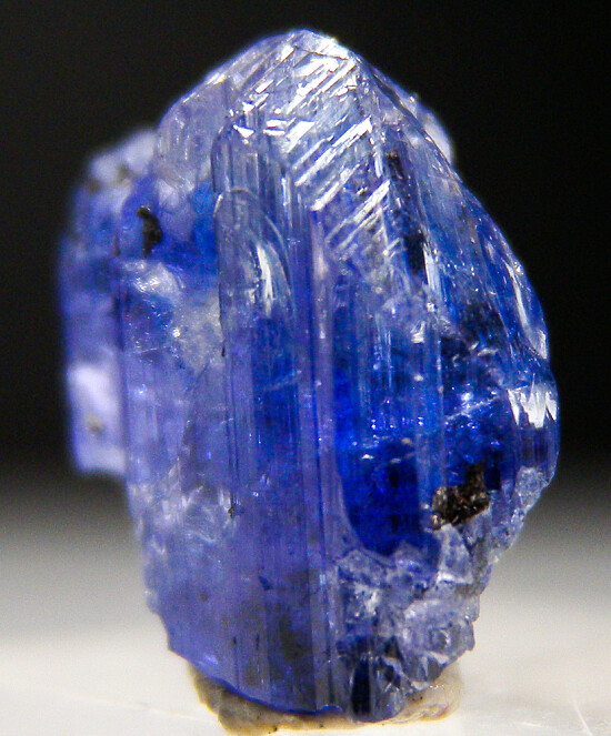 Single gemmy Tanzanite crystal from the Merelani Tanzanite mines. A beautiful glassy crystal with deep blue body color. Complete all around.