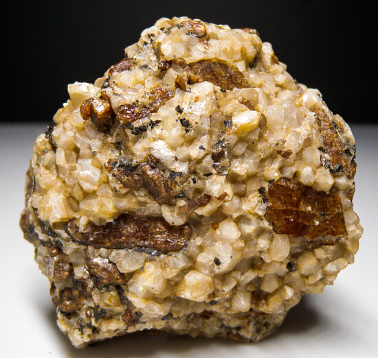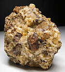 Numerous Bustamite crystals in a white Apophyllite matrix. The Bustamite crystals reach 2.5cm in size. This could be trimmed into a number of good miniatures/thumbnails.