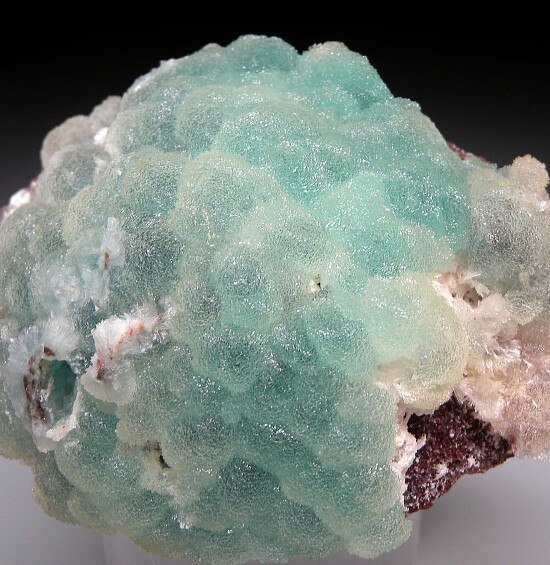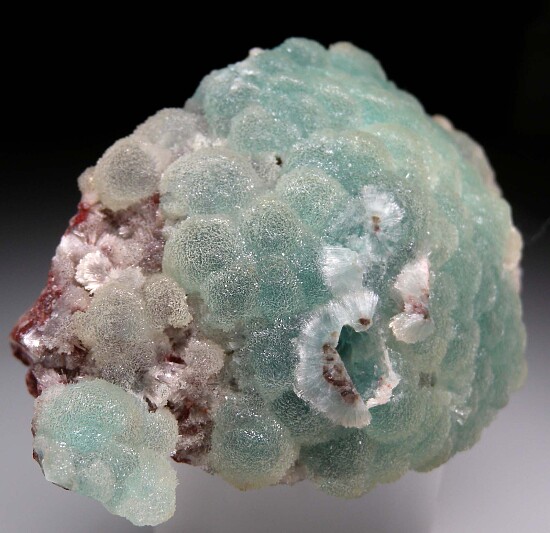 Intergrown spherical masses of translucent blue Willemite crystals over matrix. It's uncommon to find this combination of color, quality, and size in a Tsumeb Willemite.