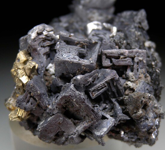Cluster of hoppered (skeletal) Galena crystals from the 9th of September Mine in Bulgaria. These are true skeletal Galena (not the man-made variety that were circulating years ago!) and occur with Sphalerite and Pyrite crystals. Undamaged and well crystallized all around, essentially a floater.