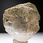 Highly transparent single Quartz gwindel from Pakistan. Complete all around and in good condition with some chipped areas as shown. It has a light coating of green chlorite that makes it a little hard to see in the photos that the interior is water clear and transparent. Ex. Len Pisciotta collection.