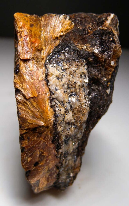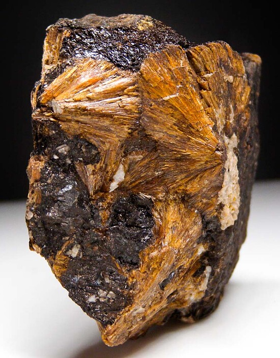 Dark red acicular crystal clusters on matrix. There are several radial clusters embedded in the matrix. Better known from South Africa, here's a nice and rarely seen Australian example!