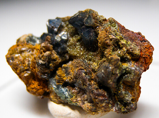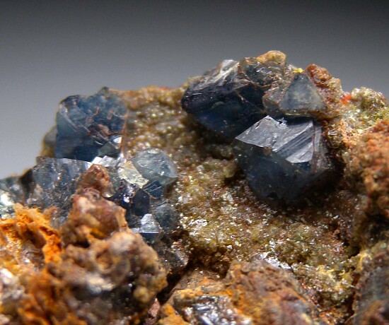 Limonite matrix with crystals of translucent blue Scorodite to 5mm in size.