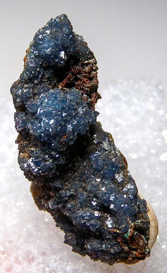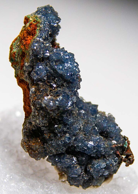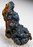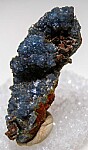 Limonite matrix covered by blue Scorodite crystals. Crystallized Copper is present on two areas (top right and the bottom tip).