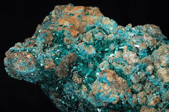 Bright blue/green crystals of Botallackite on all sides of specimen. The Bottallackite crystals are numerous with a bright, almost metallic appearance and fill small vugs all over the specimen. Botallackite is a rare secondary copper mineral and this is a very rich example from recent finds at Cligga Head. You can find similar pieces on the web priced at over $1000.