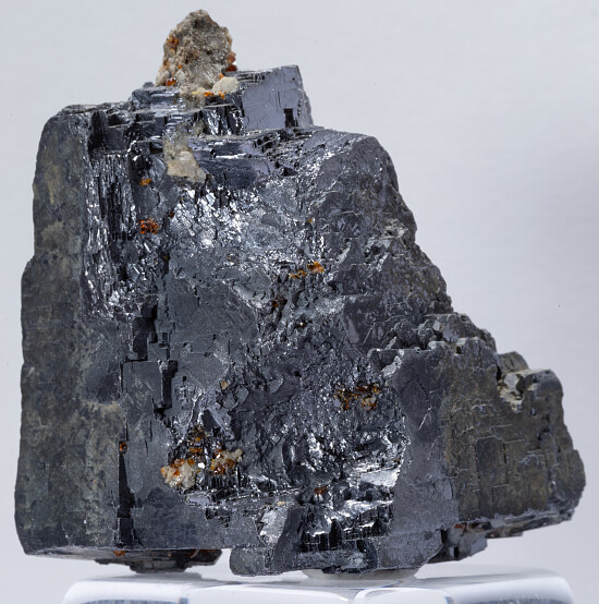 Classic cubic Galena crystal from Missouri. Good crystal faces on all sides with small red 'ruby jack' Sphalerite crystals attached in areas.