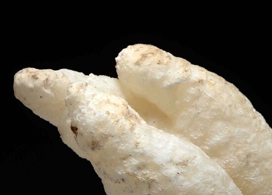 Unusual finger-like Calcite stalactites from the Buffalo Mine in Utah. There are six stalactites in all (and one missing) that are complete all around and perfect. White with a translucennt yellowish glow when backlit.