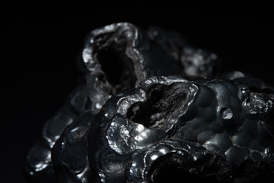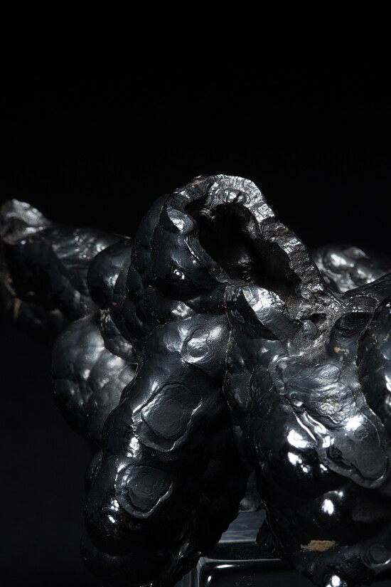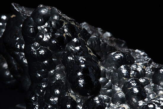 Metallic black Hematite specimen from Morocco. Solid Hematite with shiny botryoidal formations on the front half. Ex Ravenscroft-Canon collection originally purchased in 2013.