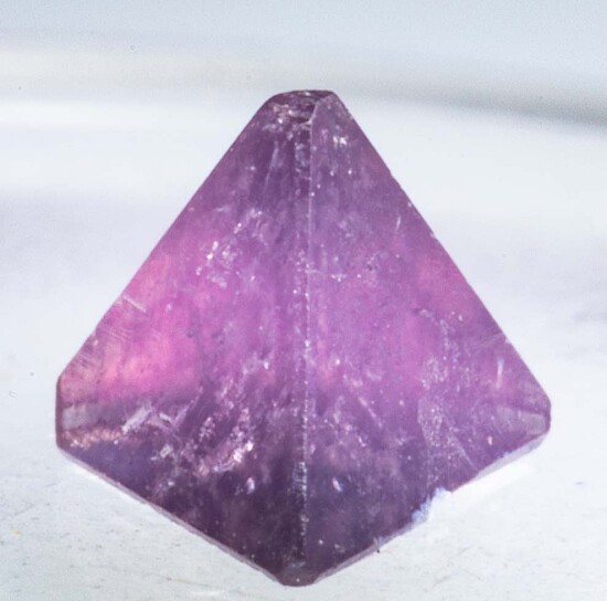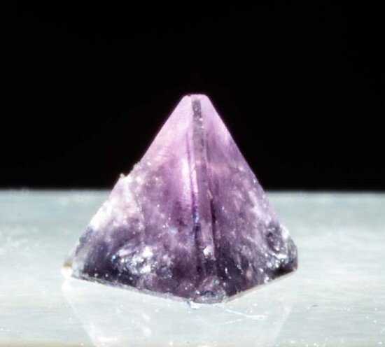 Complete tetrahedron of Chambersite, a rare mineral found in salt formations in a small number of localities worldwide. Translucent 'amethyst' purple in color and collected by Fred Pough in 1970. Small but perfect! Ex. Chuck Trantham collection.