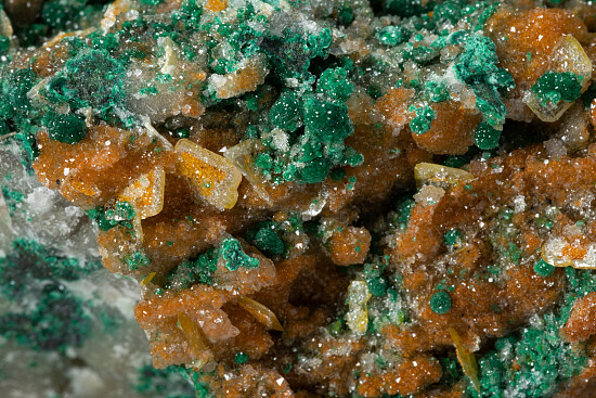 Wulfenite, Mimetite, Malachite